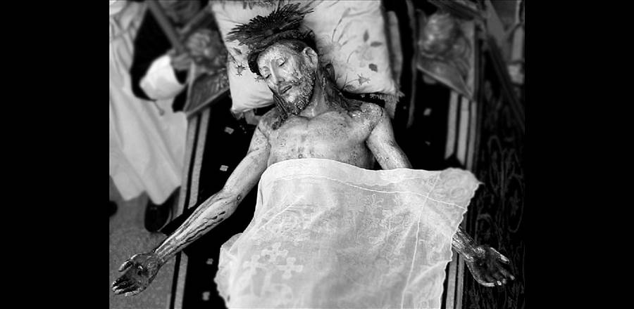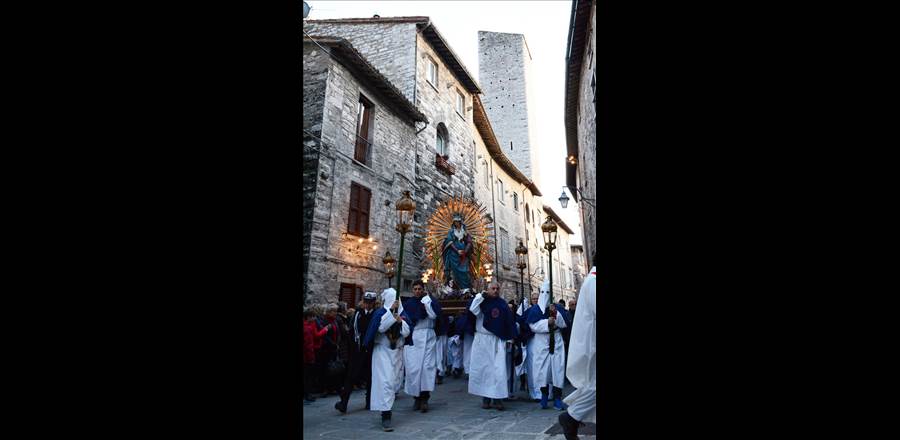 Poi sfilano i simulacri del Cristo Morto e della Madonna Addolorata, pregevoli sculture lignee dell’artigianato locale. Dietro le statue del Cristo e della Madonna, intonano le loro note i cantori del “Miserere”, canto popolare tramandato per tradizione orale. La processione percorre le principali vie della città, partendo all’imbrunire, tradizionalmente dalla Chiesa di Santa Croce: negli ultimi anni, a seguito dei lavori di ristrutturazione della chiesa, la processione parte alle 19.30 dalla Chiesa di San Domenico.