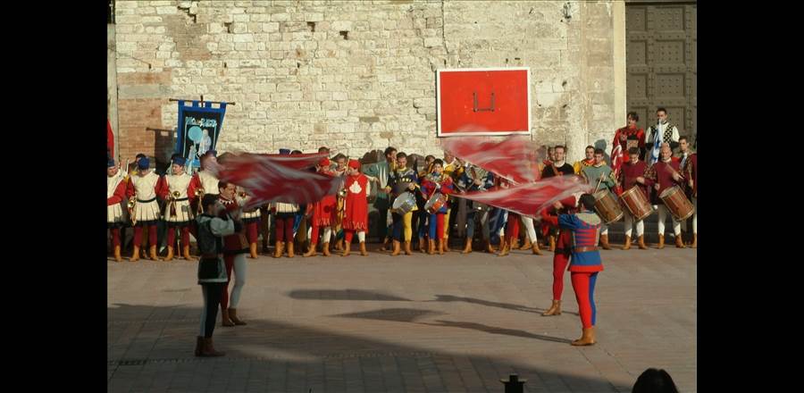 In occasione del 25 aprile, festa della Liberazione, gli Sbandieratori di Gubbio si esibiscono con i loro eccezionali numeri, in Piazza Grande alle 11,30.