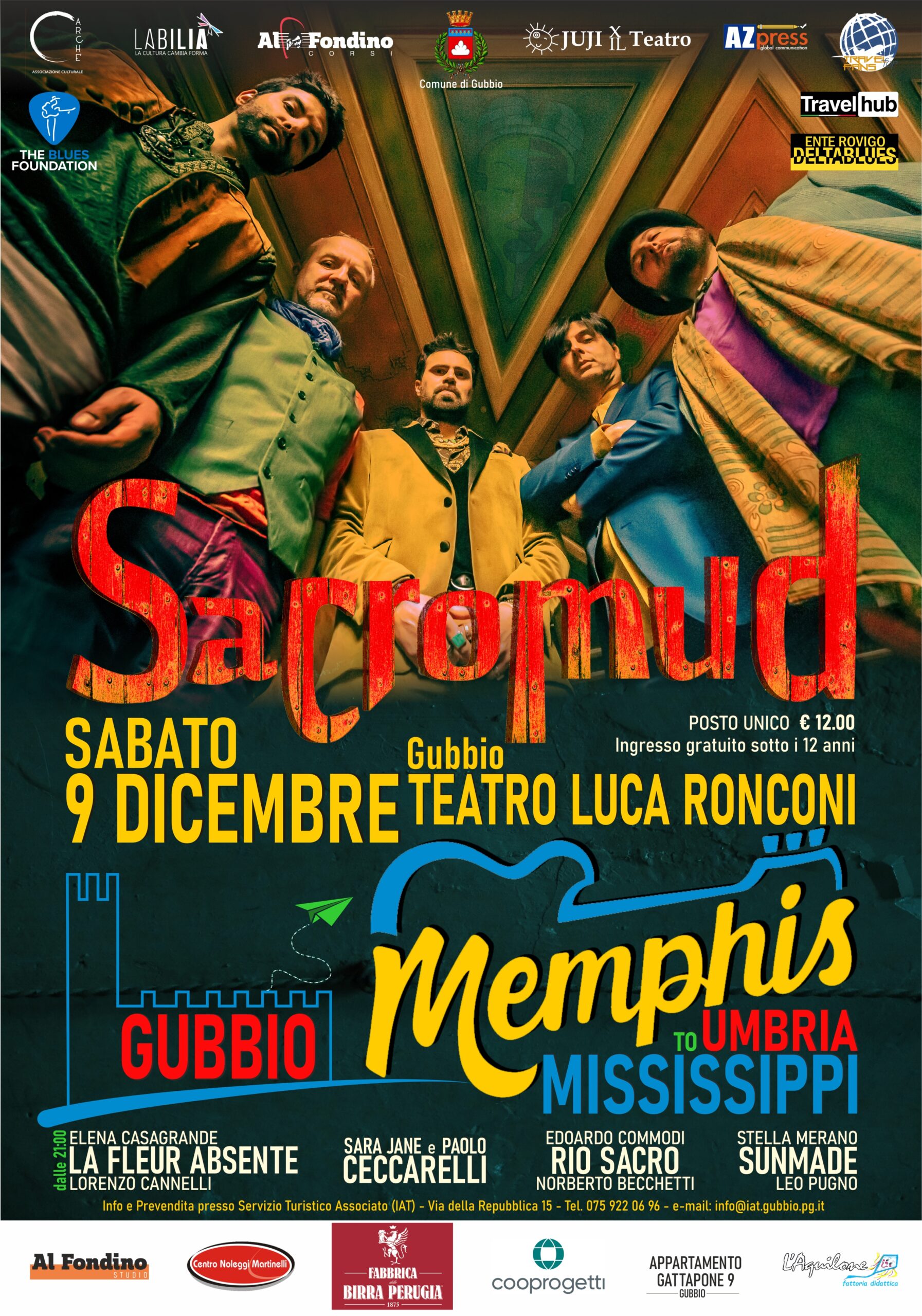 Il 9 dicembre 2023, presso il Teatro Comunale Luca Ronconi di Gubbio, è in programma l’evento di presentazione del progetto Gubbio To Memphis, Mississippi to Umbria: l’orverground suite dei Sacromud!