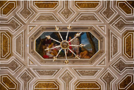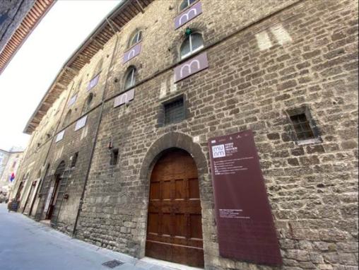 Il palazzo in cui è allestita l’esposizione, costituisce un valore aggiunto per le sue caratteristiche architettoniche, dai resti di pregevoli affreschi di Ottaviano Nelli (sec. XIV), ai grandi spazi delle sale in pietra con la volta a botte, a saloni con travi e capriate in legno, fino a sale più piccole affrescate.